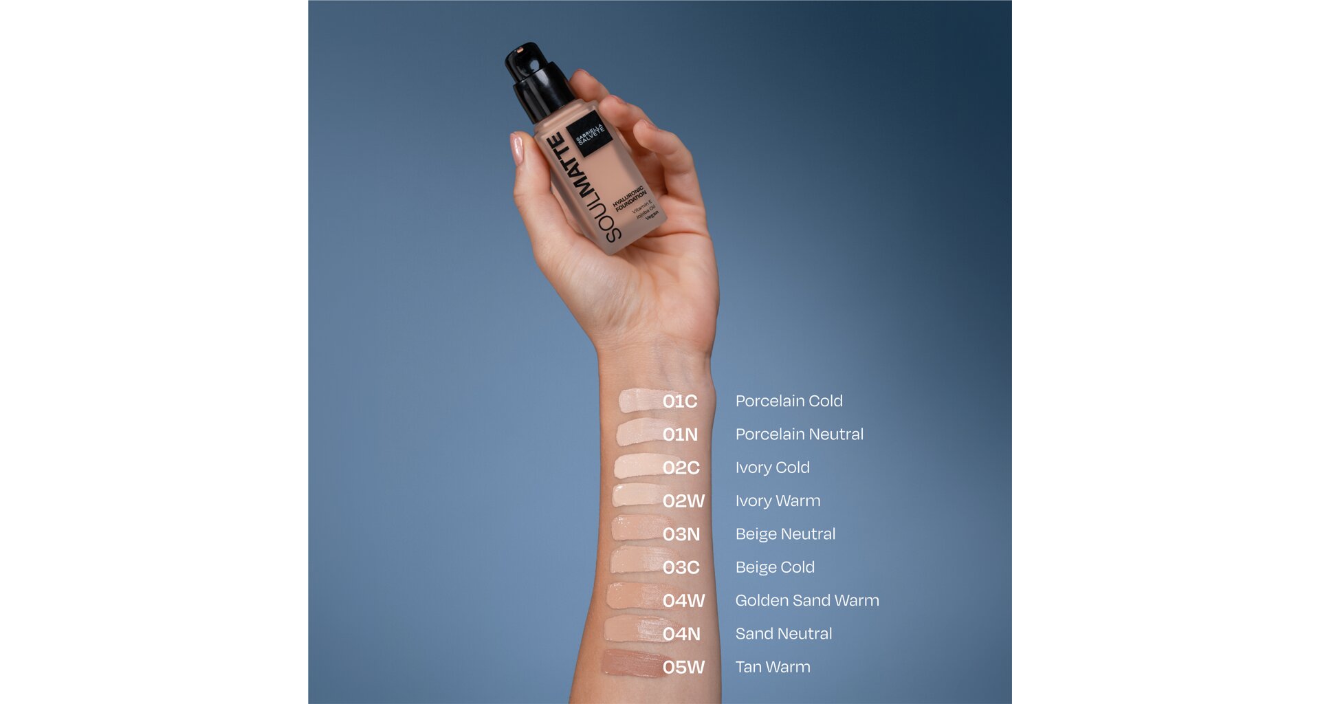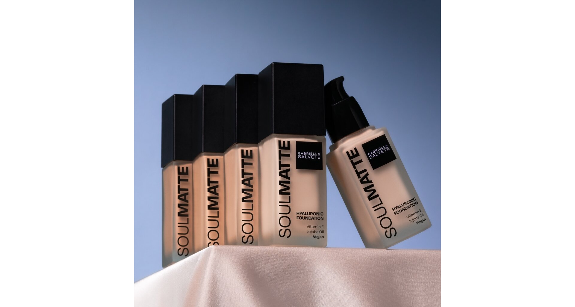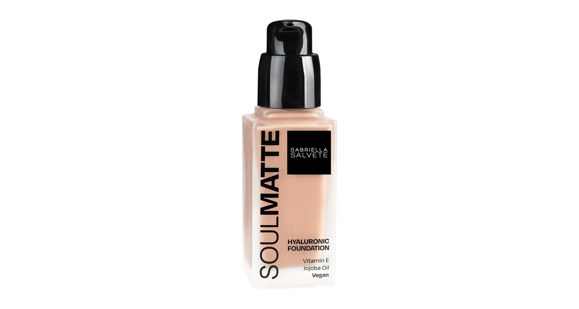 Soulmatte od Gabrielly Salvete je spřízněná duše pro všechny, kdo hledají make-up, který pleť zmatní a poskytne jí přirozené krytí. Matující efekt bez vysoušení pleti, střední krytí, dlouhotrvající výdrž a sametově hebký finiš se postarají o bezchybný výsledek. Lehká sametová textura dokonale splyne s pletí a díky obsahu kyseliny hyaluronové, jojobovému oleji a vitamínu E pleť vyživuje. Zatímco vysokomolekulární kyselina hyaluronová, která se drží na povrchu pleti, účinně zlepšuje hydrataci vnější vrstvy pokožky, vitamín E má antioxidační účinky. Pro vyšší krytí je SoulMatte možné vrstvit houbičkou. Hodí se pro mastnou, ale i normální a smíšenou pleť.