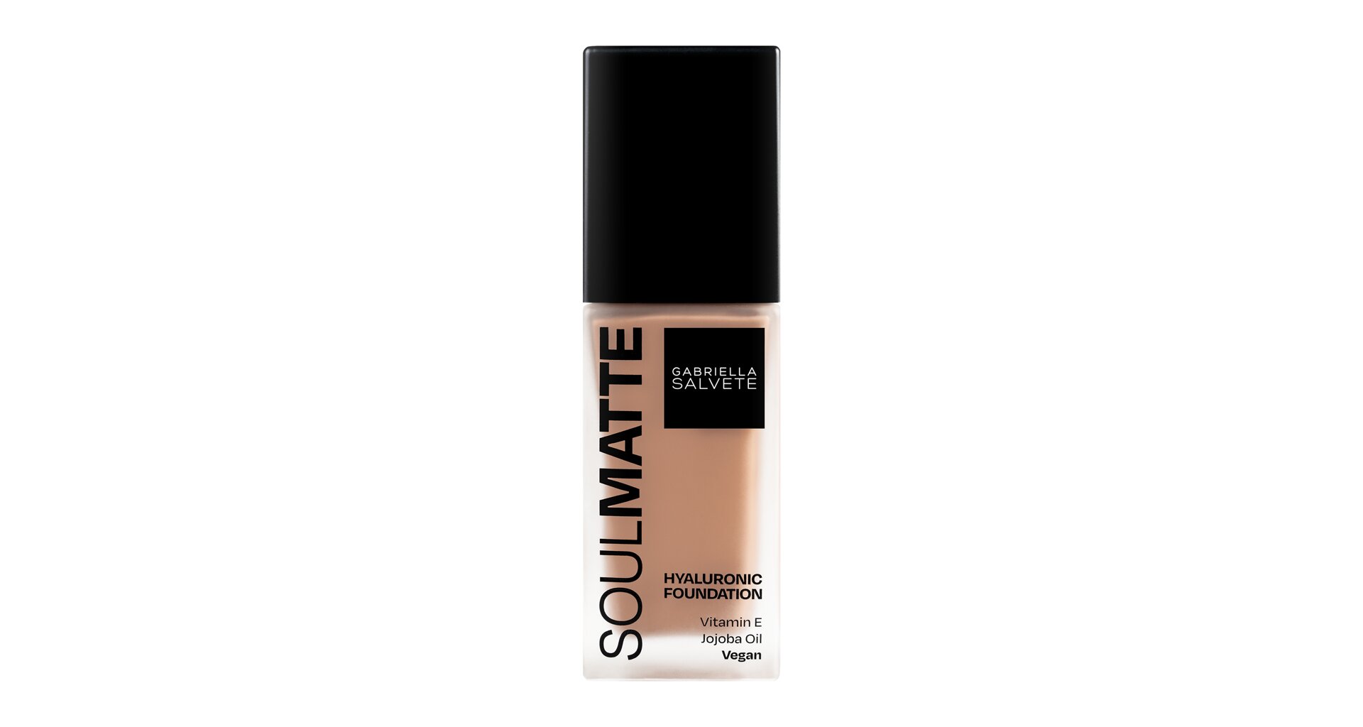 Soulmatte od Gabrielly Salvete je spřízněná duše pro všechny, kdo hledají make-up, který pleť zmatní a poskytne jí přirozené krytí. Matující efekt bez vysoušení pleti, střední krytí, dlouhotrvající výdrž a sametově hebký finiš se postarají o bezchybný výsledek. Lehká sametová textura dokonale splyne s pletí a díky obsahu kyseliny hyaluronové, jojobovému oleji a vitamínu E pleť vyživuje. Zatímco vysokomolekulární kyselina hyaluronová, která se drží na povrchu pleti, účinně zlepšuje hydrataci vnější vrstvy pokožky, vitamín E má antioxidační účinky. Pro vyšší krytí je SoulMatte možné vrstvit houbičkou. Hodí se pro mastnou, ale i normální a smíšenou pleť.
